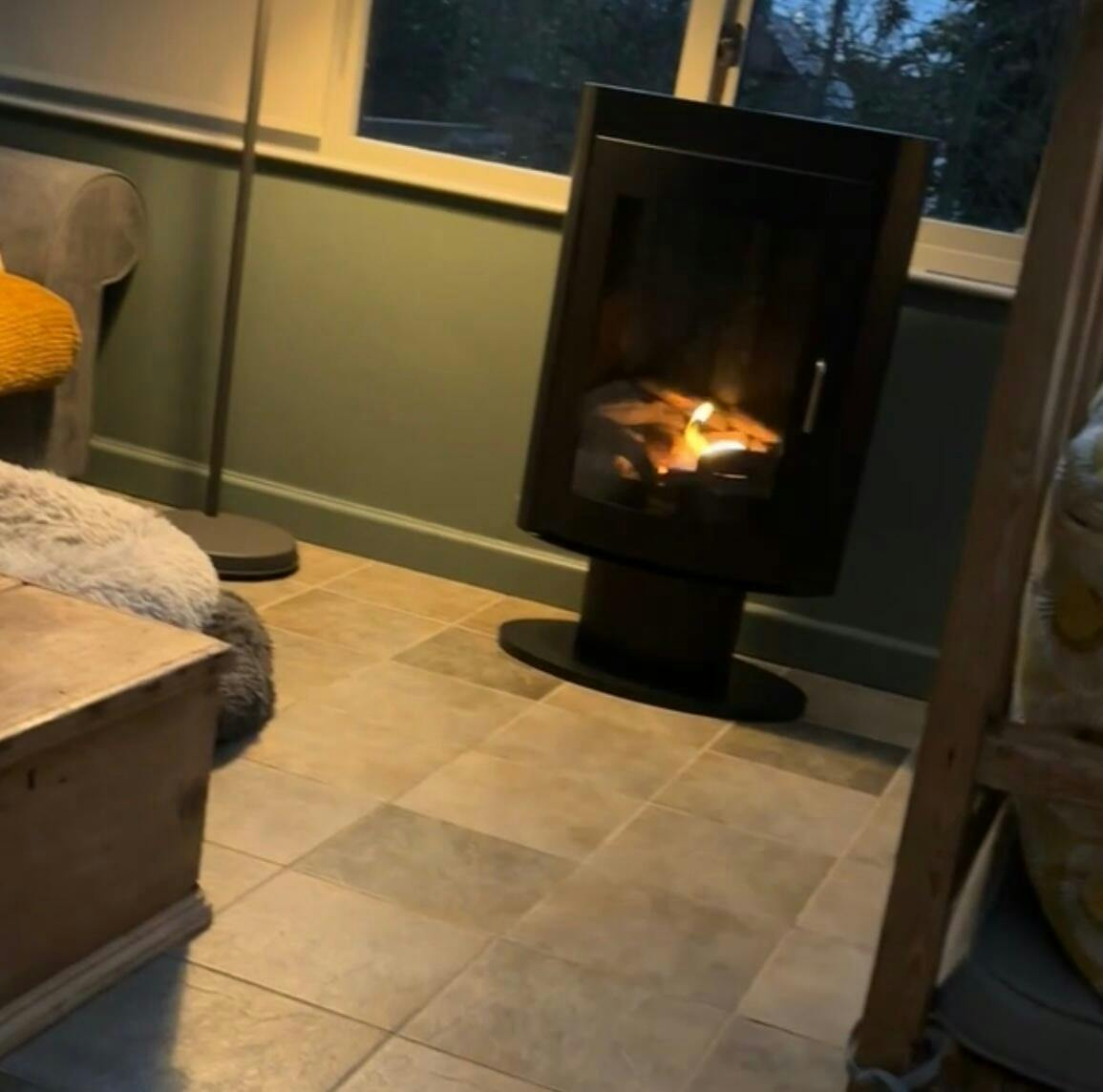 The Trenton freestanding bioethanol stove is designed as a classic wood-burning stove on a stand.